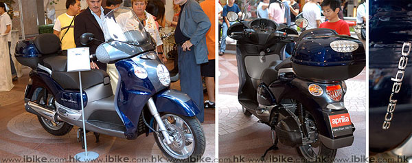 | 現場便有如Aprilia車展般,搬放著各式名車。還有香港未有的Scarabeo500綿羊。 | ||