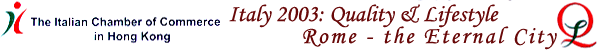 由9月12日至9月21日止,香港意大利商會在銅鑼灣時代廣場地下,舉辦了一個名為:「意大利2003優質生活博覽會」。並以「永恆的城市 - 羅馬」為題,開放予公眾人士參觀。 |